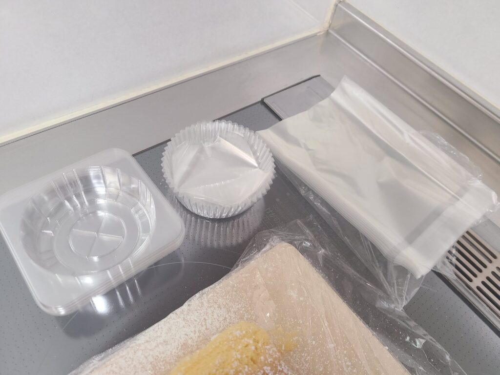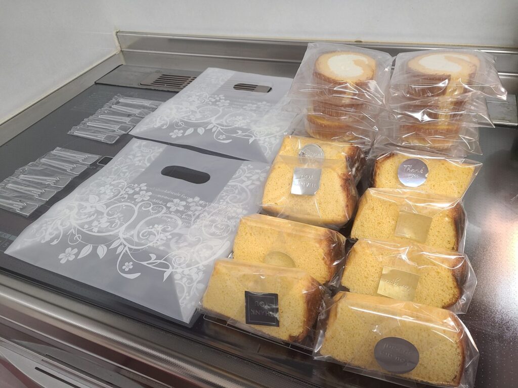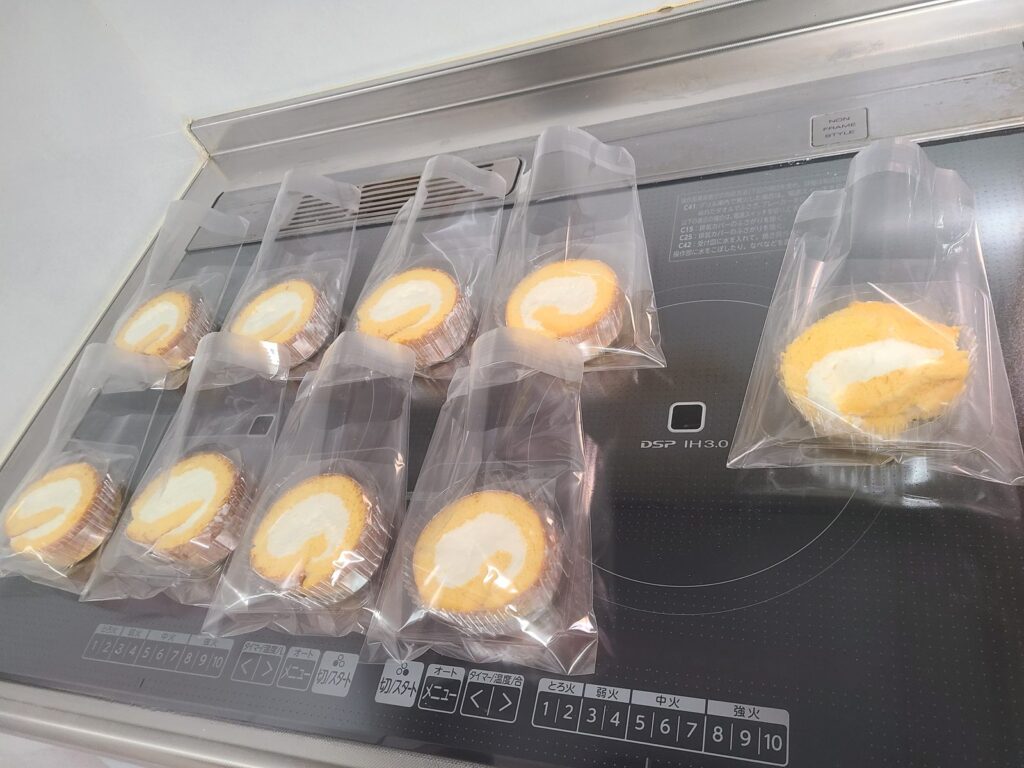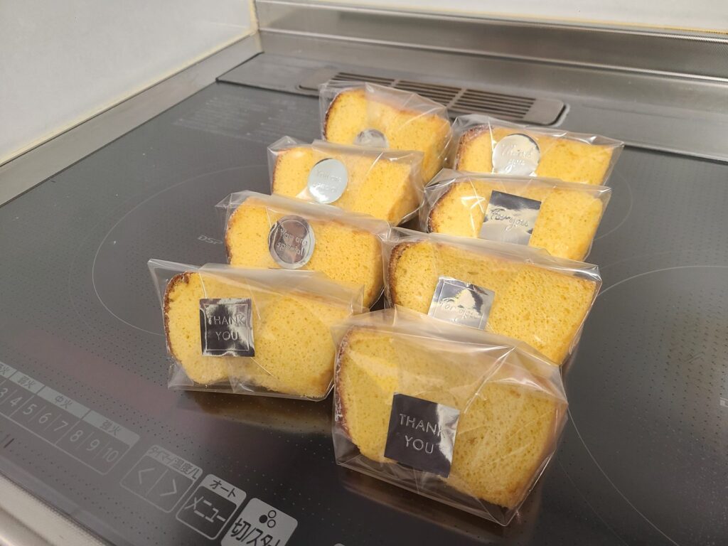 このカットしたシフォンケーキ……個包装どうしようか……。