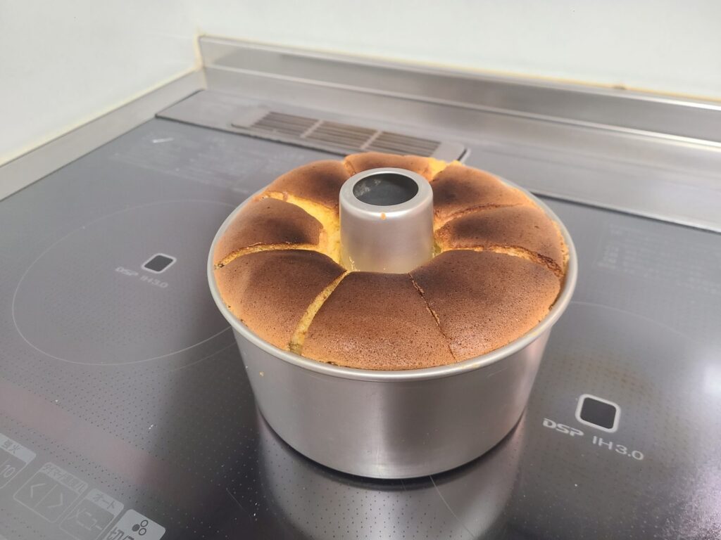 シフォン焼き完成。次はロール生地を作ります。