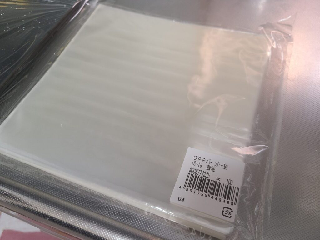 まりなに提案してもらったOPPバーガー袋を調達。見た目も持ち運びも非常に良い。